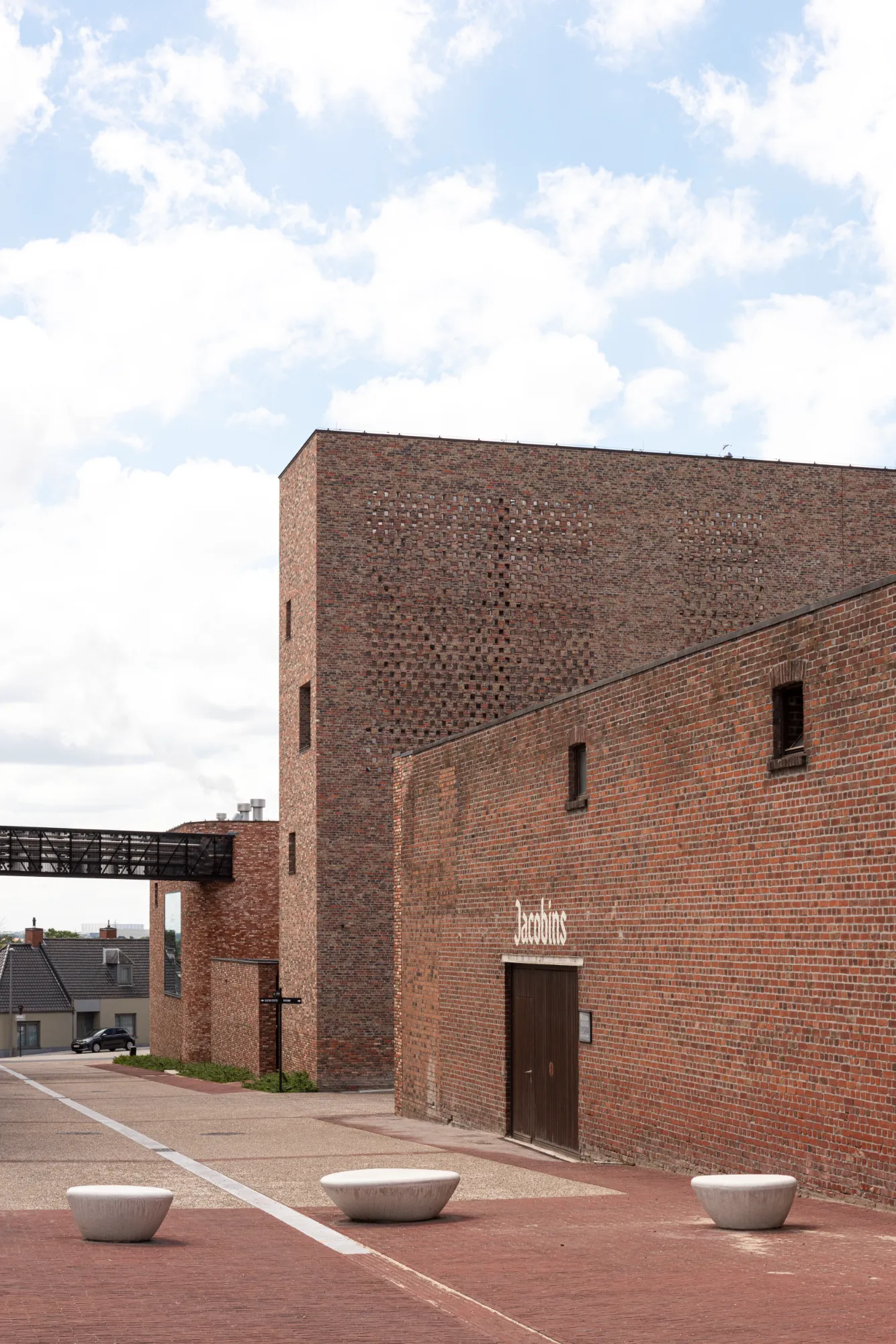 Het gebouw is deels ingegraven, waardoor de hoogte van het hoofdvolume beperkt blijft en de karakteristieke silotoren sterker tot zijn recht komt. Deze ingreep zorgt voor een robuuste, stabiele basis die het reliëf respecteert en tegelijk de technische werking van de dubbele brouwzaal ondersteunt.
