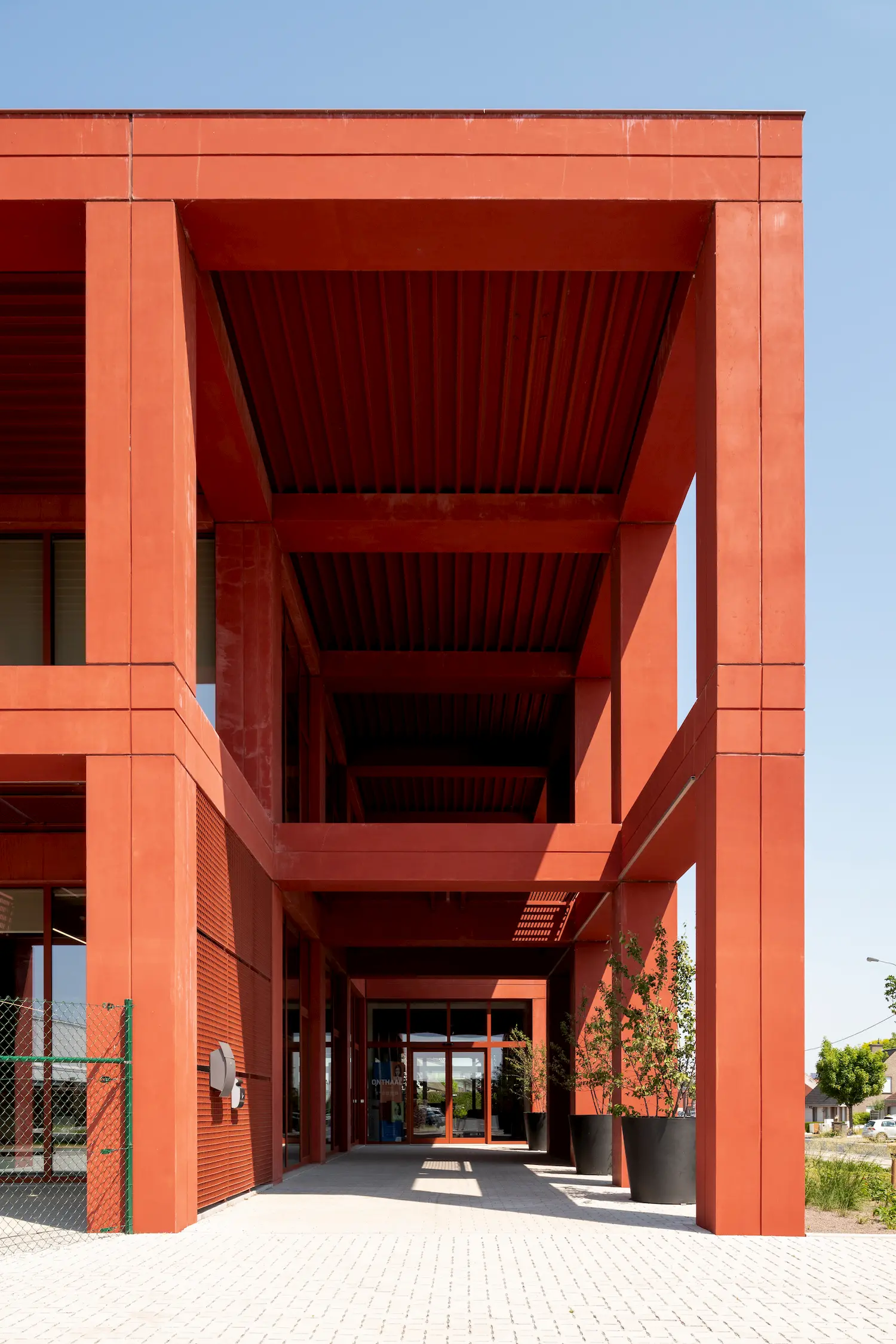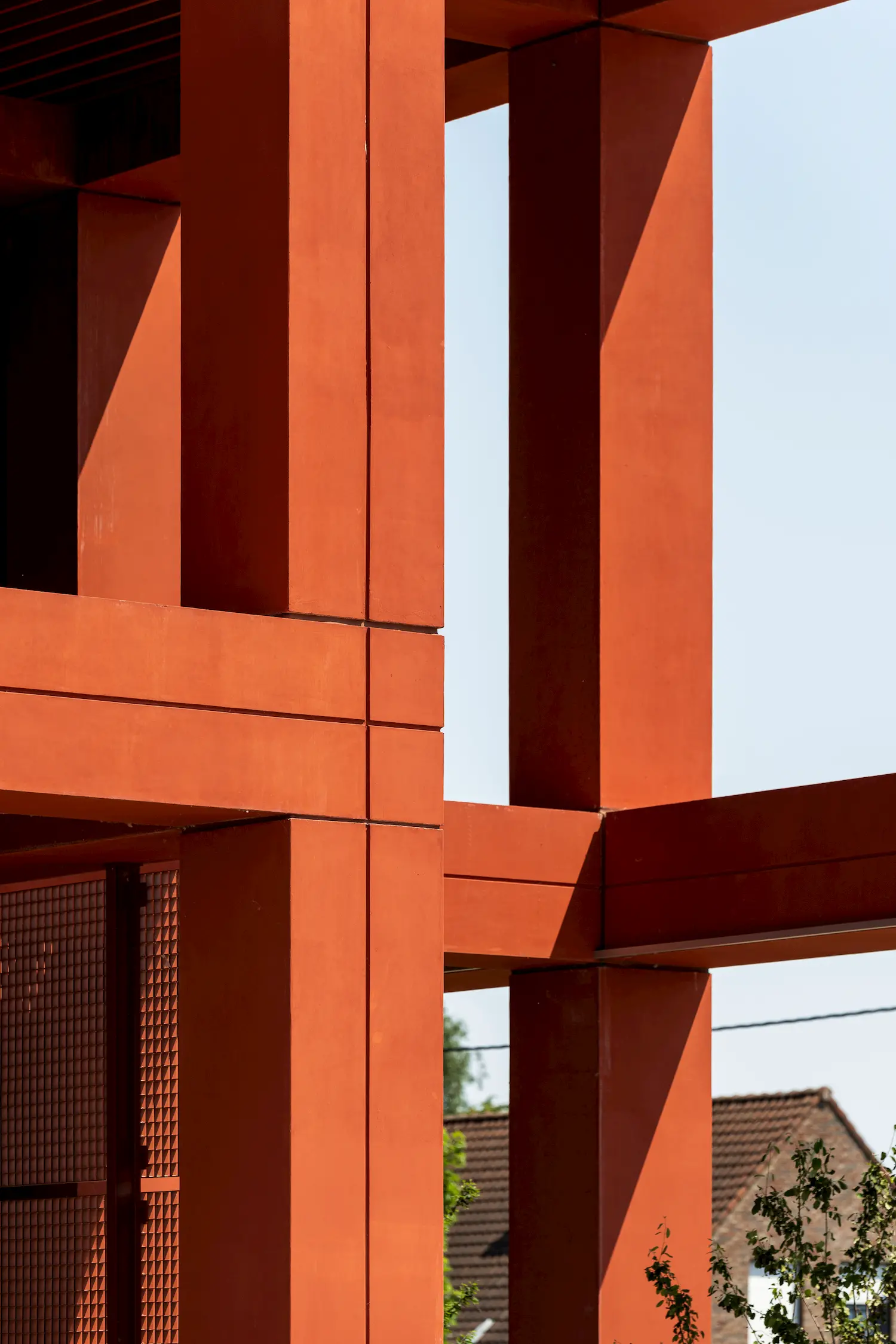 Om deze grote massa medewerkers vlot te verwerken, is het gebouw ontworpen op maximale efficiëntie en duurzaamheid. De interne structuur, het repetitieve prefabbetonritme en de heldere circulatie vormen een solide ruggengraat die toekomstgroei kan opvangen. Het roodbruin gepigmenteerde beton verankert het gebouw bovendien in de industriële context van de bestaande WAAK-site, met een hedendaagse technische verfijning.